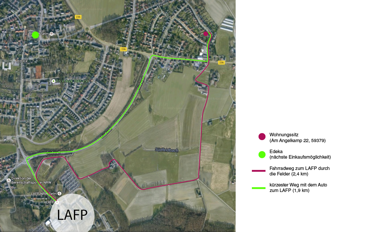 Standort Ein Wegeplan, auf dem die möglichen Wege zum LAFP sind. Und wer das Haus mal von oben sehen will, kann das hier tun.